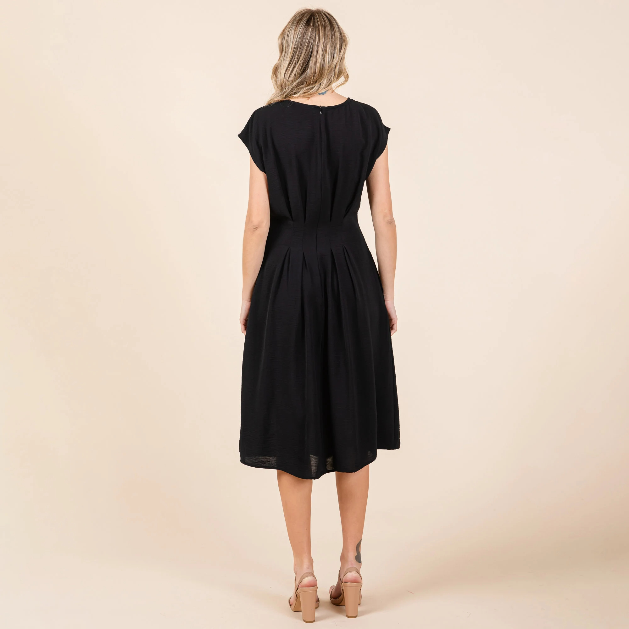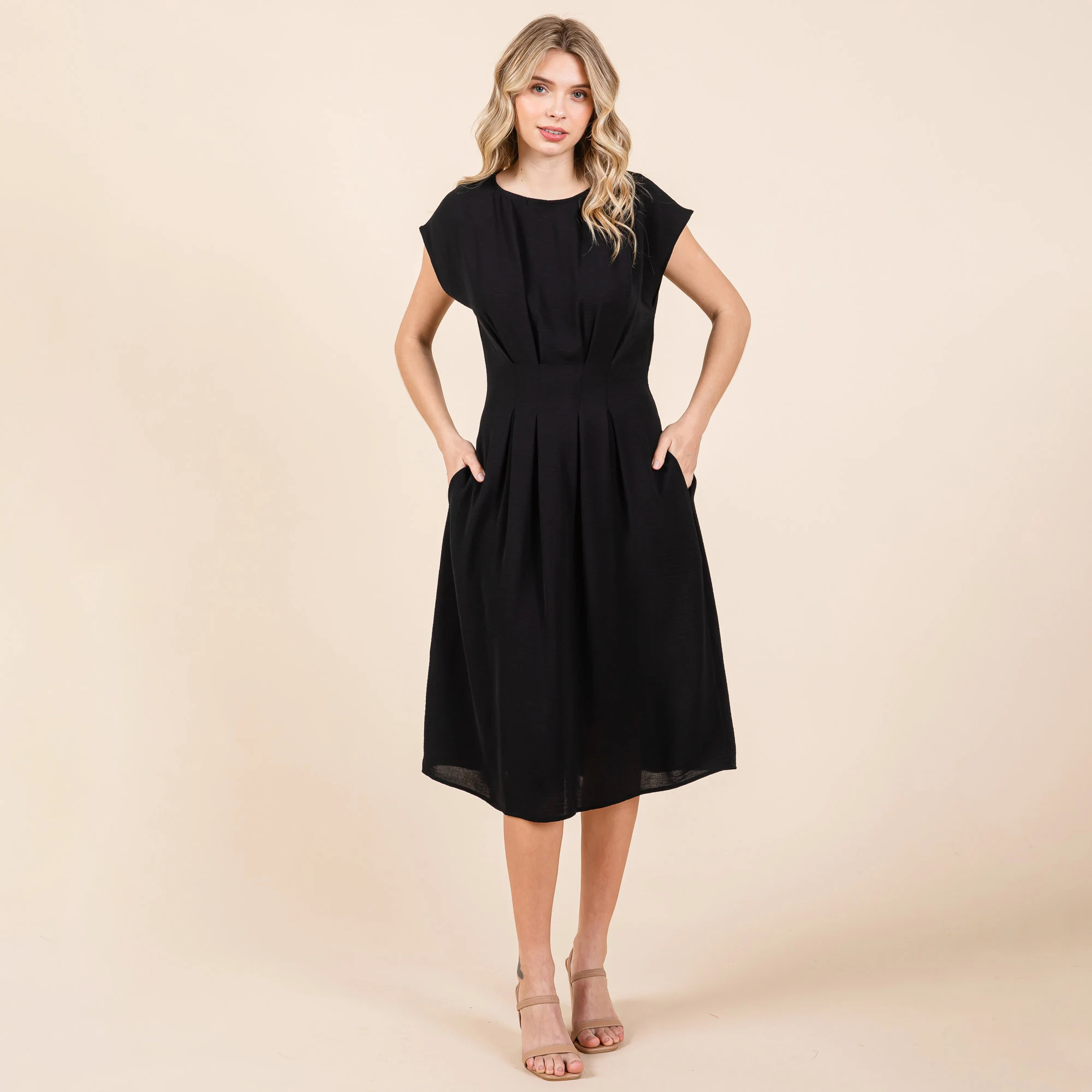 Pleated Waist + Full-Swing Skirt: Three-dimensional pleats at the waist naturally define the waistline, enhancing body proportions (slimming waist and lengthening legs). The midi-length skirt flares from the waist, concealing excess weight around the waist, hips, and hips while swaying gracefully as you walk, creating a stylish and discreet look.