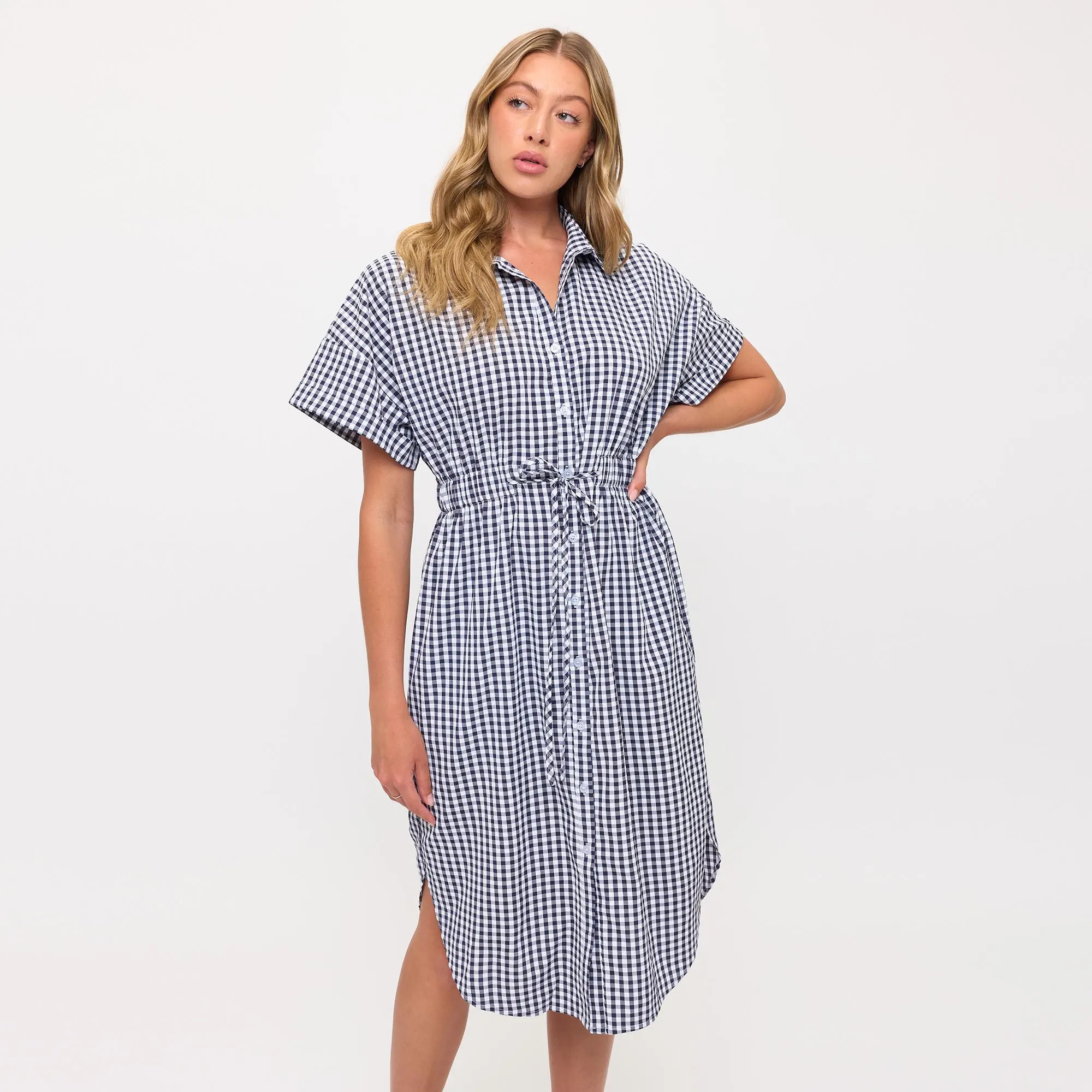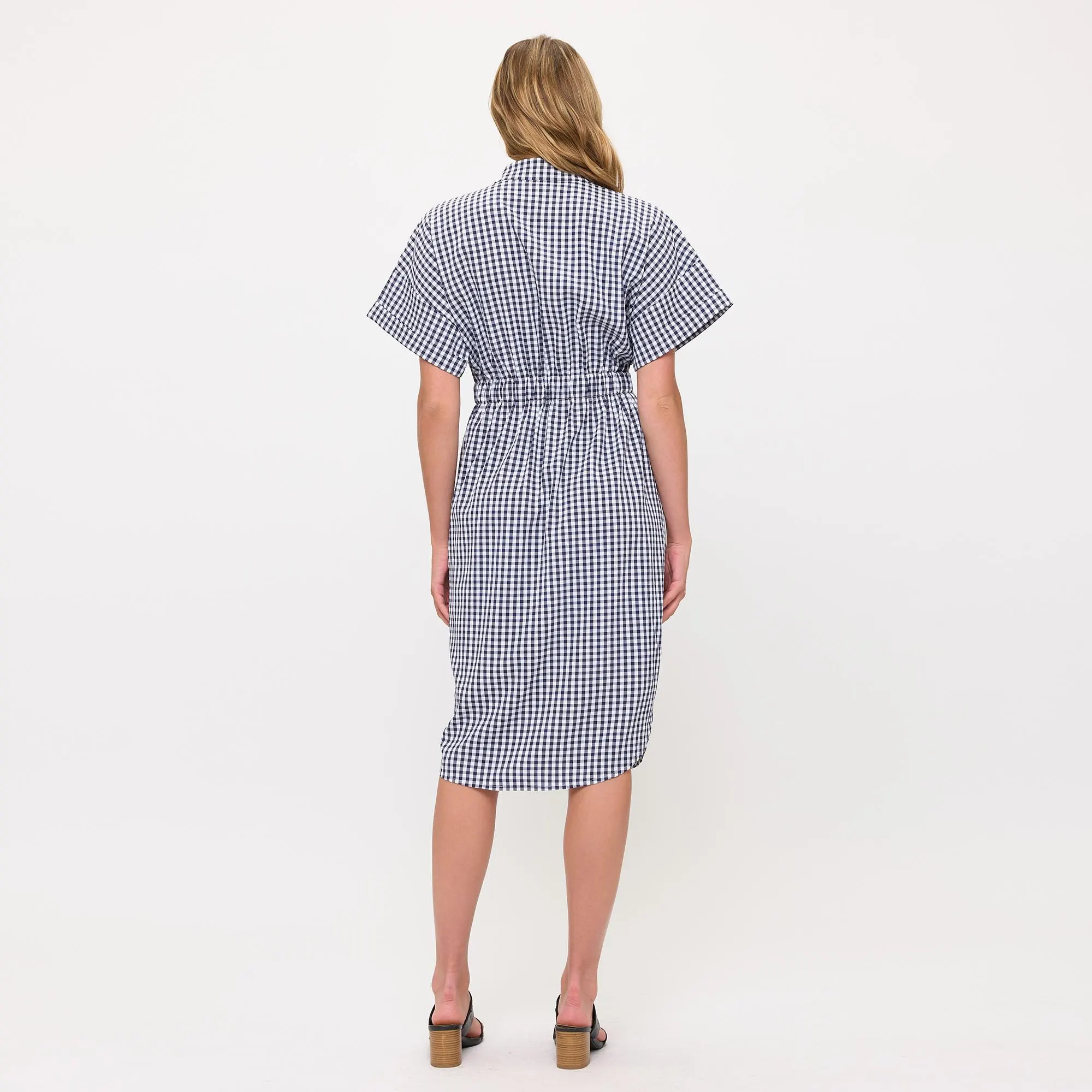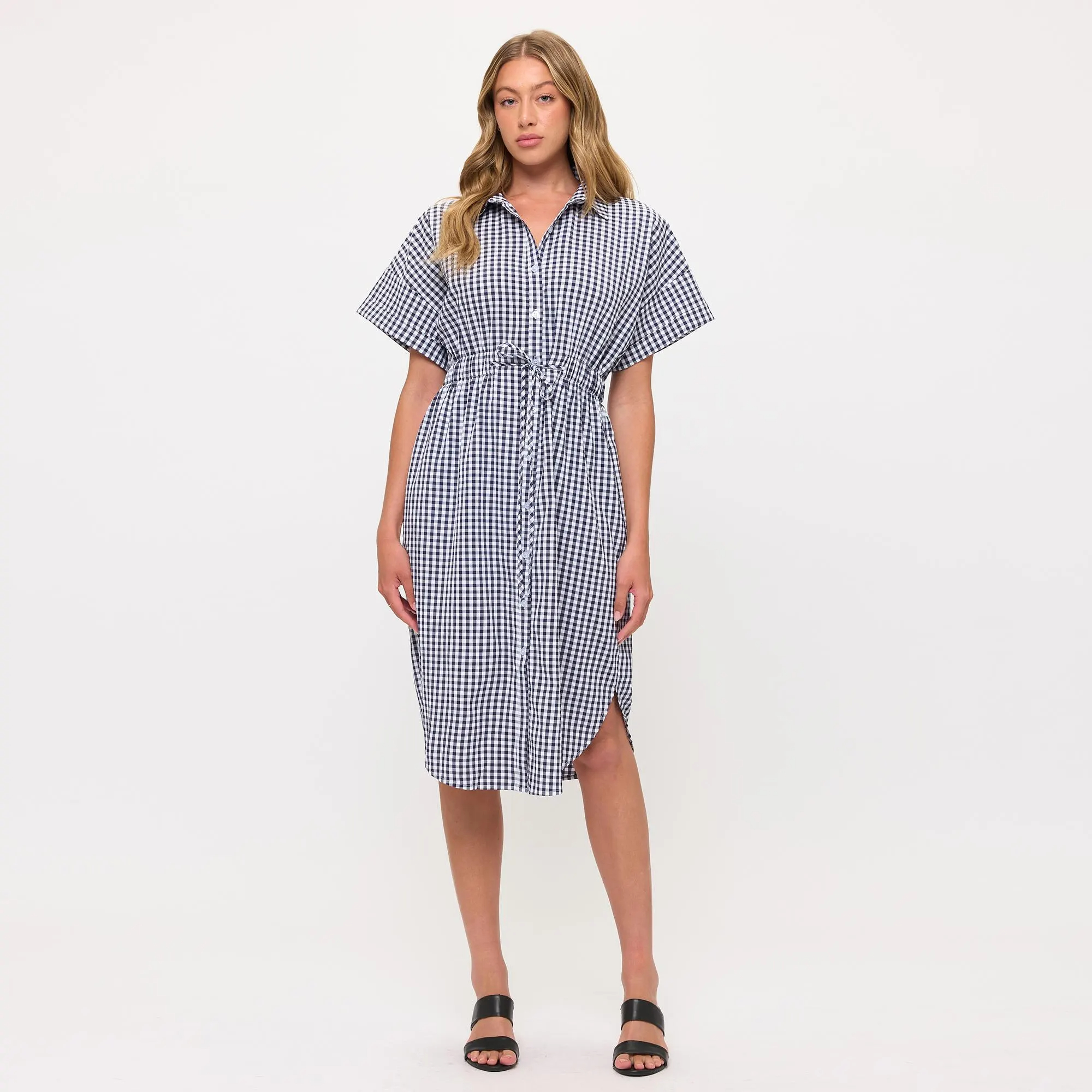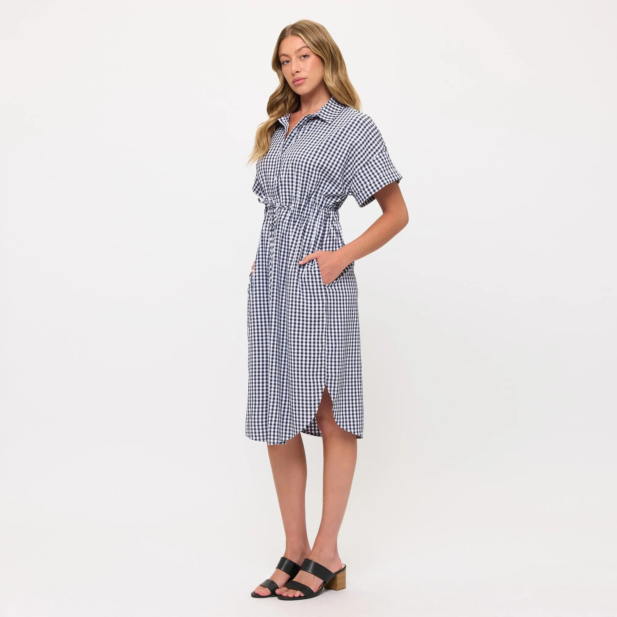 For a relaxing vacation look: Pair this with a wide-brimmed straw hat and brown sandals. The blue and white plaid blends beautifully with natural tones, creating a French vacation vibe for strolls to the beach or a small town.